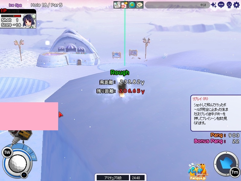 毎回新しい伝説と新しいネタを提供してくれるこのクラブに付きっ切りでリポートしてまいりましたが、なんと今日で最終回(Wω・`) なんてねww(´っェ・`)クス さーて、前置きはこれくらいで今日はどうでしょうか?あれ?何だか新しい人が増えてますね?えーと資料によりますと、加入は試合当日!クラブに新しい風を入れてまいりました!マスターが金で引き抜いた?ん。違いますね。FAのようです。なんと自分から白黒猫に加入を申し込んできたもよう!この助っ人が白黒猫の未来を左右するのか?注目が集まります(’-’*) さて。最初のコースはWiz City(@・`Д・)bどんなコースかというとこういうコース! あぁ間違えました。コースではなくショット後でしたね(ノ∀`)いったいいきなりのOB!いったい誰なのでしょう? マスターでした・°・(ノД`)・°・改めましてコースの紹介です! なんとこのコース池の中を滑りながらいけるのです!いや、そんなバカなww資料間違えてるよ?(★´ノェ`)コチョーリ あぁ。これもOBですか(Wω・`)まったく多いですね。今度は誰ですか?picesさん?いつもながら、ただでは終わりませんねぇ((´∀`*))この人はww コースの資料が存在しないようです。申し訳ない(Wω・`) 第一回戦は、そつがなく終了したようです。(Wω・`)実況する暇すら与えてくれないのね? これ、順位あってる?あぁ、合ってるの?新人が一位?古株大丈夫?(´っェ・`)クス なんと!第一回戦は白黒猫の風が一位!まさに助っ人!まさに新風!もはや古株はいらないといわんばかりの結果ですね(∀ ̄*) 二回戦はIce SPA。ここは氷に囲まれた温泉が有名ですねヾ(-`ДW。)ノダー!!! マスターが持病の膝とパンミ病を治すために通っているらしいです(*Wω;) ここはまず新人の佳凛さんが見せてくれます!このショット!一回戦の結果では満足できないのか?それともここで決定的にこれからは新人の世界だと見せ占めているのか!Σ(°Д°Ⅲ) マスターが復帰してからまだ一度も出していないHIO!ここで佳凛さんが見せ付けました! (=・x・)<由羅の出番はもうないよ。家に帰りな (Wω・`)途中雑音が入ったことをお詫びします。 はい!ここでチップインの映像が入ってきました!決めたのはマスター由羅!マスターとついているけど何もマスターしていないのはご愛嬌(*Wω・):;*。’:;ブッ えーっと、ここで追記事項です。パンミ? まぐれだったようです(´っェ・`)パンミで入るということは、つまり狙っていなかったという事実!あぁ相変わらずですねw その様子を見ながら、現在すべての取材陣を独占している佳凛さんはと言うと、 温泉に入ってましたwここの効能は・・・・お肌にいいそうですΣヽ(Д〃)ノ ここでカメラマンから謝罪が入りました。結果をとりそこなった? 明日からカメラマンが変わります(Wω・`)新しい人に期待しましょう。 では、最後に知っている人は知っている、この挨拶でお別れしたいと思いますw おすすみーヾ(-`ДW。)ノダー!!!