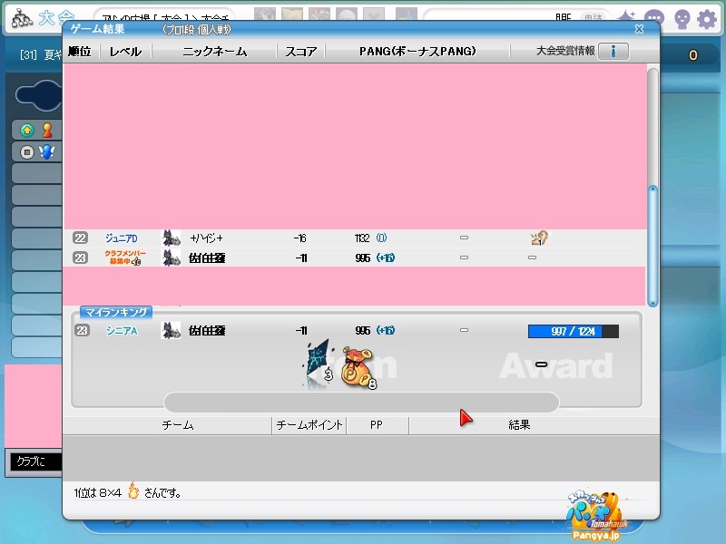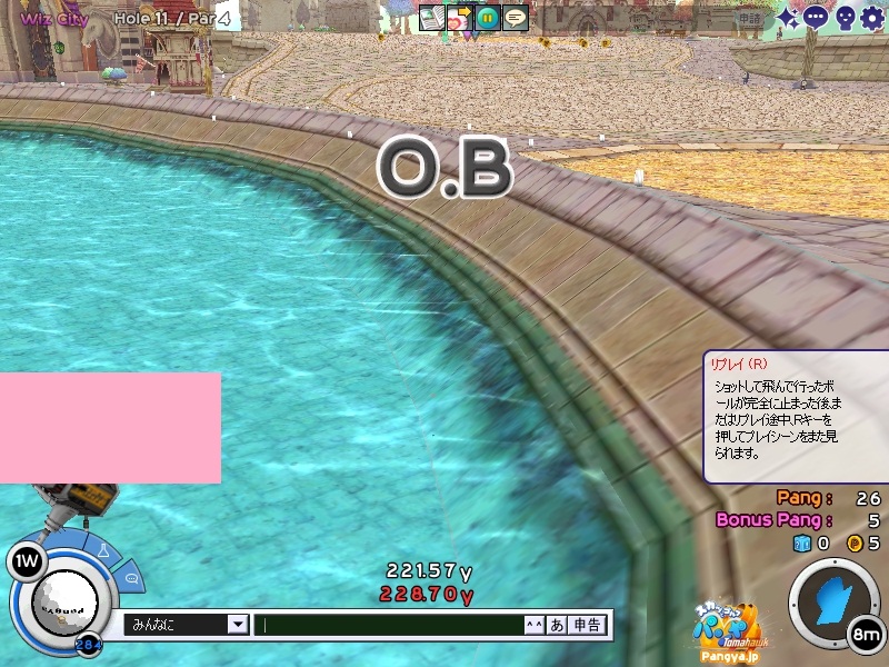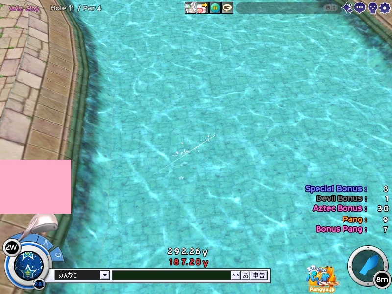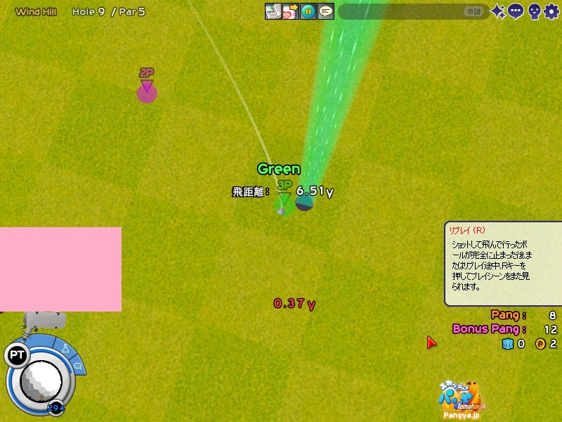 ここ数日、私のカリスマ性と話題性が人を呼んで、その人は必然とも言うべく我がクラブに入り(ノ∀`) 気づいたら結構ワイワイとクラブが盛り上がってきたの。 それでついに来るべき日が来たか。という感じで、メンバーが大量にログインしていたの('∀'*) それはもう、ニャーニャーとうるさいくらいに(∀ ̄*) こうメンバーが多いと、マスターとしては心がうずくわけです。いや、まぁチャットでその疼きは大量に言葉として発してはいましたけどねw メンバーに暇ならゲリラ交流会をおこなうよー!と送ってみたところ、来るわ来るわw 平日の夜だというのに新規で入った信者が(ノ∀`) 古株は私だけだったので、ここで私の実力を見せておかないといけません。はい。見せ付けてやりました はい?見せ付けたんだろうって?えぇ(Wω・`)しっかり見せ付けてますよ?おかしな人ですね。 見せ付けたのはすばらしいプレイではなくてマスターの実力とマスターの人間性ですよ? 疲れた(*Wω・):;*。’:;ブッ もうこんなキャラは疲れるねwwいつもはダダダダっと文字を羅列していくのに、今日は凄い時間がかかったよ(ノ∀`) はい!全力で行きます!全力で!キーボードが壊れるくらいに!(マテ 新しいメンバーやちょっとなれてきたメンバーが口をそろえて言う言葉(Wω・`)マスター。パンミがひどいです。 おかしいですね?入会したときに壷を差し上げているはずですよ?あの壷は持っているだけでパンヤが決まりまくるという・・・・・あれ?間違えた(ノ∀`)パンミの壷だったよww 返品はきかないし、割ることすらできないからヽ('Д'*)ノ うちの団体は壷を持ち、マスターをあがめる団体だよ!?(´っェ・`)クス 私はよく駅近くで壷を売っている壷売りの少女(@・`Д・)bかっこいいでしょ? それにしても、ここは風が強い(Wω・`)ただでさえ苦手なコースなのに、こう風が強いとスコアどころではありません・°・(ノД`)・°・ それの犯人を捜していたところ、佳凛さんが一言「ごめん。私のせいだ(ノ∀`)」 どうやら神風の新人は健在のようです。 何?出身地が風の谷?(Wω・`)なら仕方がない。風は操るは、虫は操るは。あれには逆らえません。今度家の害虫をすべて操ってもらいましょうw みんなが一生懸命プレイしているなか、micossさんといううちのメンバーは砂場で遊んでいました((´∀`*))ケラ ここがお砂場だからってプレイでまて遊ぶことはないよ?(Wω・`)しっかりしてよね(’-’*) そうやってメンバーが池やら砂場やらで遊んでいる間、今まで遊んでいたハイジさんが一言。 「ネタの時間は終わった。これからは本気で行く」 何でしょう。この主人公みたいな台詞はwww これから進化するの!?ケチョンケチョンにされちゃうのかしら!?( p_q) その台詞に触発されたのか佳凛さんが37yのパットを決めるというなかなかのLPっぷりを発揮。どうやらみんな遊びに来ているんじゃないことを思い出したようです(*Wω´-)遊びに来ているのはマスターだけなのよ?知ってた? 先ほどまで砂場で遊んでいたmicossさんも触発されたらしくLPに挑戦!しかし(@・`Д・)b 「42yとか届かんw」 どうやらいいところを見せようとしすぎたらしいです(★´ノェ`)コチョーリ そんな中、終始聞き役に徹し、黙々とクールなところを見せ付けた二人がトップを激走w遊んでいた方々は、まぁ妥当でしたw マスターの成績が悪いって?マスターって強くなくちゃいけないの?マスターは楽しい場所を提供すればいいのよ!ヽ('Д'*)ノ それよりもマスターの下が気になりますね?あれは先ほど本気で行くといっていたハイジさん(Wω・`) どうやら本気が間にあわなかったようです(*Wω・):;*。’:;ブッ 結果は、新人が強い!そして新風佳凛が無駄がない!┳┳~旦( ̄*) このままでは終われないと、二次会に参加したメンバー。ある程度メンバーを入れ替えて二回戦です。この回戦でpicesさんが参戦。真打は遅れてくるものさ(*W 3´-)フッ さて、大空高くはじめましょう!!! 打ち上げすぎ?いえいえ(ノ∀`)打っている場所が高いのよw このコースは割りと以前にやっていただけあって無難に進めることができましたw 途中、ヒューと来てポンと入った人がいたようですが、たぶん気のせいです(*Wω´-) みんなもこのコースは無難に勧められるのか、あまり悲鳴も聞こえず淡々と進んでいきました(Wω・`)つまらん。 その結果がこちら!え?何も書いてない?書くことがないのだよ。君(ノ∀`) 何だか無難ですね。ん?一人PPを大量に持っている人がいますね!あぁさっきヒューと来てポンと入ったのは彼でしたかww 話を聞くと、壷を買うお金をためないといけないとかなんとか(Wω・`)なんだ。壷なら今なら300円が16000円で買えるのに(Wω・`)お得だよ? その後、メンバーは解散しましたが数名で対戦でまったりしましたwそちらは結果のみ載せることとしますw では、最後に今日のプレイバック!ただただきれいに取れたキャプを張るというコーナーですw それでは、みなさん?あいうえヾ(-`ДW。)ノオ-!!!!w PR