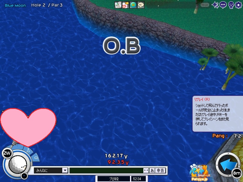 みなさんこんにちは!マスターです!急に始まりました。残暑の日本いかがお過ごしてすか?(’-’*) 時たま降る、夕立にすっかり 最近は、本当に夕立が多いですねorz ちょっとならいいんですが一気に降るものですから どうしようもありませんw 雨具はお忘れなくでかけましょう!(ノ∀`) さて、世間話はこれくらいにしてパンヤの話でもするかな。あまり長いと怒られるからw パンヤの世界は快晴よ!まじで!?まじすか!?('∀'*)なら行きましょう! ということでパンヤの世界にやってまいりました(*Wω´-) クラブメンバーはまだ誰もログインしていないので、暇そうな友人一人を誘って大会へw ログインするメンバーなんているのか?って(’-’*)うんここにいるよw 友人「カケラが欲しいねー!・°・(ノД`)・°・」 由羅「泣かないの。ほら、カケラが出るコースがあるよ?一緒に行こう?」 友人「ありがと・°・(ノД`)・°・」 というわけでやってまいりました。いつものBW(ノω`)いざはじめましょう!お ろ?メンバーがログインしてきたわね。誘ってみようかしら。 暇だというので、そいつも誘って改めてBWへw カケラは何でも出づらいらしくて、みんな欲しいそうです。なるほど(*Wω´-) そういうアイテムなら私も欲しい。 まずは、メンバーのハイジさんがカケラ出ましたーとの事。早いね!さすが白黒猫! 運を見方につけている! 私も7H位で、一個出ましたw あれ?8Hでも出るよ?ハイジさんも出たの?白黒猫フィーバー!128番台スタートおめでとう ゲフンゲフン(´っェ・`)病気がw 途中で友人に聞いたところ、まったくでないねー!との事。放置しましたw その結果がこちら 私が3個。ハイジさんが2個。すごい出た('∀'*) 友人?あぁいたね。言いだしっぺが(´っェ・`)クス この世界の理を知ってる?言いだしっぺは出ないの(★´ノェ`) 大会が終わったところで・・・え?スコアの事を説明しろ?黙れ はい!ここで大会終了。メンバーも増えてきたので、対戦へ以降w友人は帰りましたw 対戦では、いつものノイエさんとハイジさんの三人です。 はい!こちららーゆ 由羅TV局です!先ほど大量のカケラ窃盗団が出たとの知らせを受けて、 現在Wind Hillへ来ております!こちらでは現在三人が回っている最チュ・・・お待ちください! カケラです!ポンポンとこちらでもカケラを回収してまわっております! あれが窃盗団でしょうか!あっこちらに気づ・・・・・・ Wind Hillでは、まったりのほほんと対戦をしましたwピロロ♪はい、え?あぁわかりました。 すいませんうちのヒットマンが小鳥を落としたようです(’-’*) Wind Hillは攻めづらく攻略しづらいので嫌いっすwどうやらほかの二人も同じようで、 まったく同じ木にトマホークミサイルを撃ち込んでいました(ノ∀`)木が邪魔だったようですww 急すぎてキャプできなかった(★´ノェ`)コチョーリ 今回は、銃やらミサイルやらが多いですね。まぁ佐伯財閥なら仕方がない(Wω・`) 挙句の果てにはパットを三人ともミスる始末orz 最後の最後には見せてくれましたwこの悪魔のような砂浜が(ノ∀`)一度打ち込むと計算が面倒くさいし、 なかなか出れないし、とっても大変・°・(ノД`)・°・ まだパンヤもブログもリハビリ中なので、なんだかおかしなところが多いと思いますが、今後ともよろしくw 最後に今日のマスターキャプ大賞! ではまた次回♪