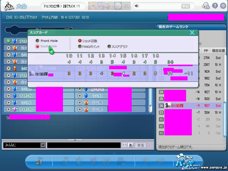 マスターは溶けてました。2年程(’-’*)えぇえぇ 決してさぼったり、忘れたり、ネット環境なかったり、リア充の為に それはそうと、久々にパンヤをして、これを更新しようと入ってみたら、まだ残ってました!こんな誰もみないネットの片隅でひっそり腐っていくような代物でも残っているなんて・°・(ノД`)・°・ それでですね!そんなことを書くつもりでここにいるわけではありません!(@・`Д・)b パンヤですよ!パンヤ!私の私情日記なんて別のブログに書いてるからいいのです!え?見せろって勝手に見ればいいさー!!!友登してないと見れないけどね(★´ノェ`)コチョーリ あぁ。相変わらず話が脱線しましたね。 クラブです!クラブ!うちの家老。「匿名K]に城ともいえるクラブをお願いして2年。 久々に入ってみると、有様がすごい!メンバーはほぼ引退やら退会やらで、ログインせずwww二人くらいしか顔を見てません(ノ∀`) それに家老ですよ!うちの家老!いつのまにかうちの城を放棄して寝返っていたねー!ヽ('Д'*)ノ謀反!謀反! まぁあんな野郎はもういいのです。泣いて戻ってきても蹴っ飛ばしてさしあげますわ(はぁと) パンヤはというと、新しいコースが三つくらい増えていて、もはや前からやっていたのかどうかさえも怪しい感じにwレベルだけが前のままなので、前からやってるRPGをロードしたら表示レベルは高いのに、中身は初心者でいきなりラスボスの前に立たされてた気分!Σヽ(Д〃)ノ とりあえず大会でパンヤ率をあげようと、適当に入った9H。あれ?ここすごい飛ぶね。あれ?普通にアルバトロスが取れるね? もしかして私ってレベルそのまま?というような調子のよさ!気づいたら-13というスコアをたたき出しました!えぇ9Hですよ? これはもしかして私のために運営がこのコースを作ってくれたのか!? そう思って18Hにいきましたよ。このままだったらいきなり-26とか言っちゃうのかなぁ。優勝しちゃったらどうしよう(*Wω´-) とりあえず最初の3H。あれ?飛ばない。あれ?池に落ちちゃった。何か様子が違います。あれほど私に優しかったはずのコースがいきなり牙をむきました。 これはあれです。入部する前はやさしかった先輩がいざ入部したらいきなり怖いみたいな? その結果がこの感じです。。。 なんか変だね?これって18Hだよね?画像逆に張ってない? いえ、正規ですww Σ(*WД◎ノ)ノ”はっ! 夢だったようですね。(;- -)=3 フゥ まぁ最初の感じは夢でつかめたから、次回本腰を入れてパンヤをプレイしていきますよ!!! PR