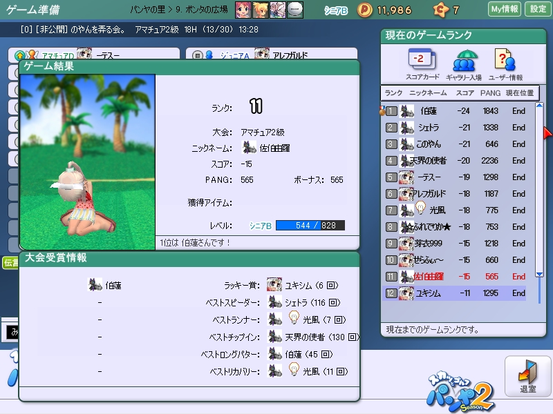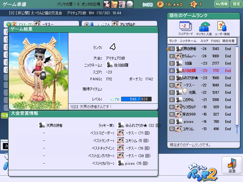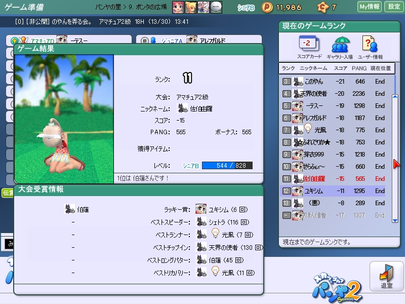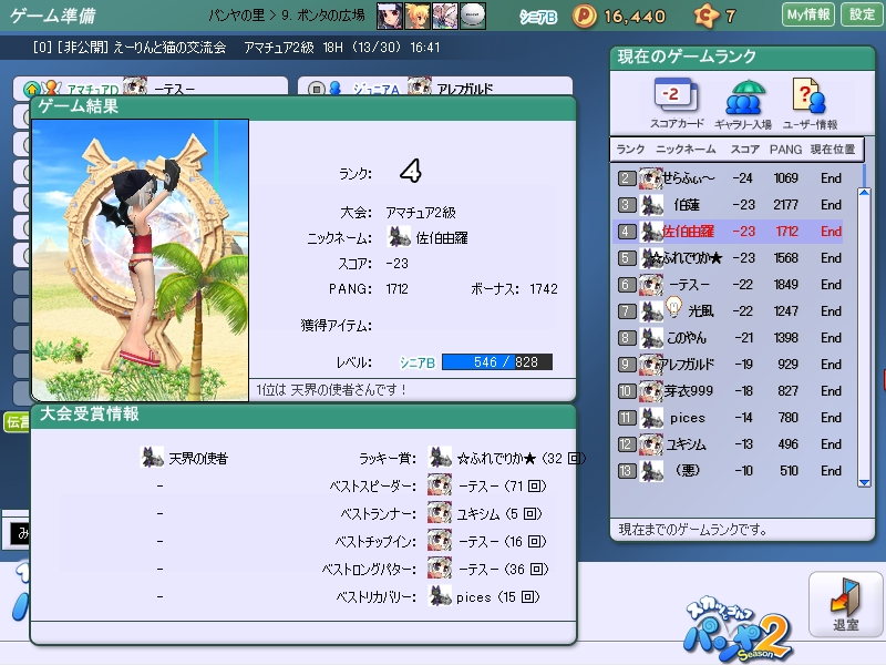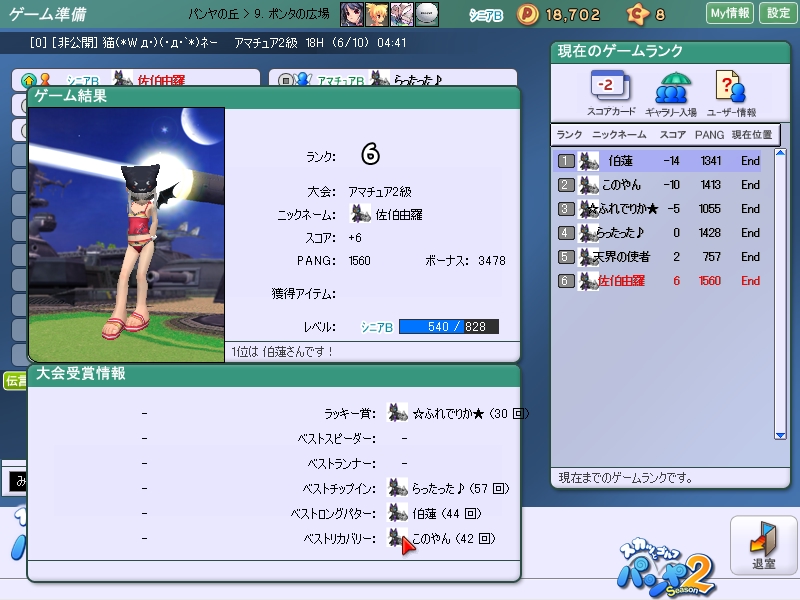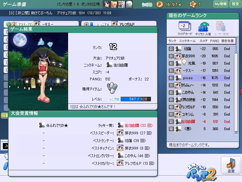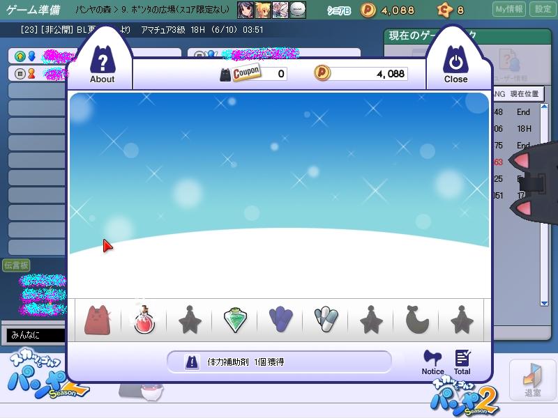 え~。お気づきの人はいるかと思いますが、マスターは二回全て、ビリ・・最下位です。。でもね!!でもだよ! PPは一番取っているの!反比例でしょ!素晴らしいでしょ!いいのよヽ(’Д’*)ノPPだけあれば!世の中金よ!金があれば何でも出来る! こんな調子では、今日の交流会はとても。とって~~も心配です( Wω・`)迷惑かけるとアレなので、今日のマスターは夜デートがあるらしい事になりました。デートだから仕方がありません( Wω・`)参加したいのは山々ですが、今日の夜はダメです。ダメダメです。